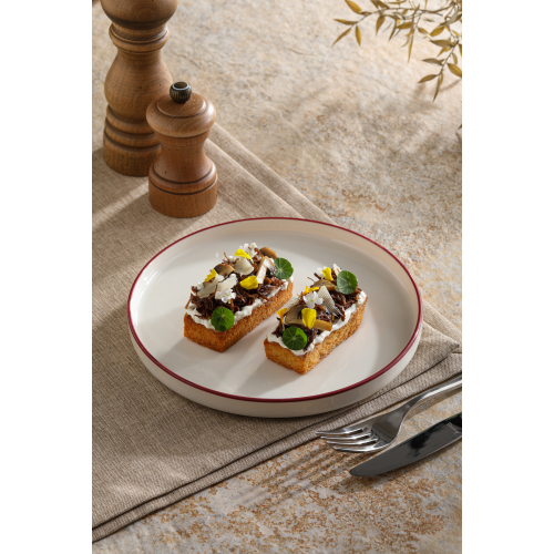 Tiftik dana yanak, zeytin tapenade, sotelenmiş kes...