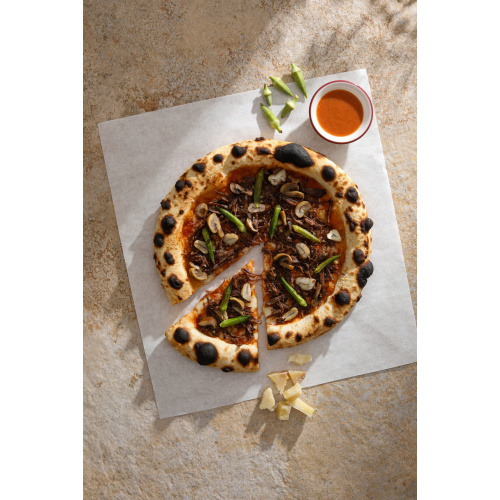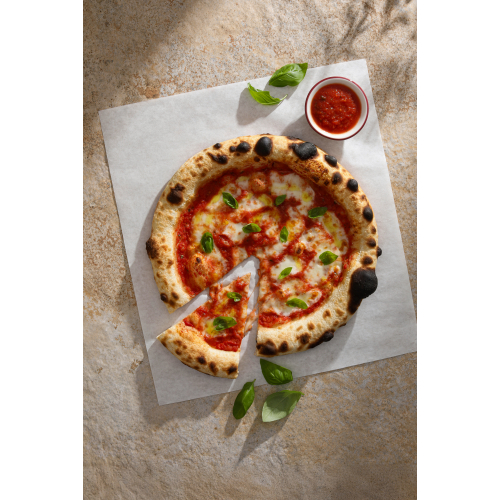 Domates sosu, mozzarella, taze fesleğen yaprakları...